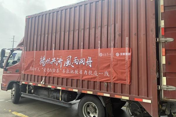 8月14日,第六批由爱德基金会与金基集团“宁”城行动基金支持的防疫物资从南京市栖霞区出发,送往扬州。