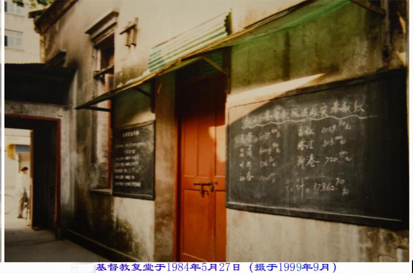 当时,由于笔者的家居房子很小(三口之家,住在12平方的小屋里),在礼拜堂的对面(中山中路781号)。礼拜堂开放后,笔者就借宿在堂里; 某某某(就是那位害笔者父亲的人)和另一位姊妹住在礼拜堂的另外二间小屋里,生活起居。