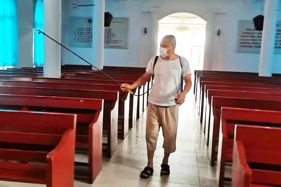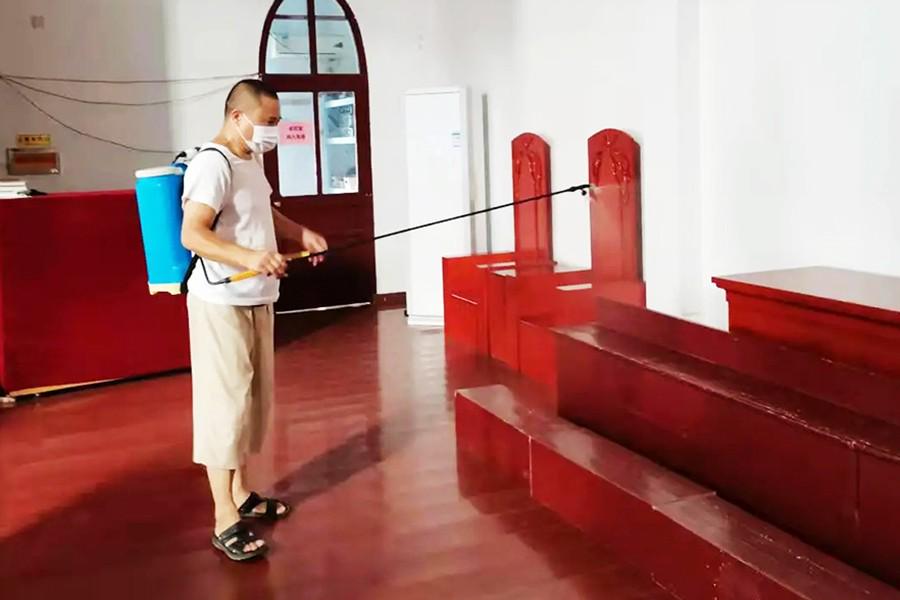 近期以来,该堂堂委安全负责人庄正海每周定期在教堂各个场所进行消杀工作,真正做到了无死角,无遗漏,力求将疫情影响最小化,在坚守中筑牢安全屏障,共同为神家献策献力。