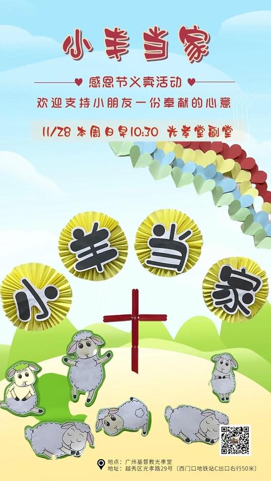 广州市基督教光孝堂将于11月28日举办感恩月慈善活动:感恩月慈善晚会和“小羊当家”感恩节义卖活动。