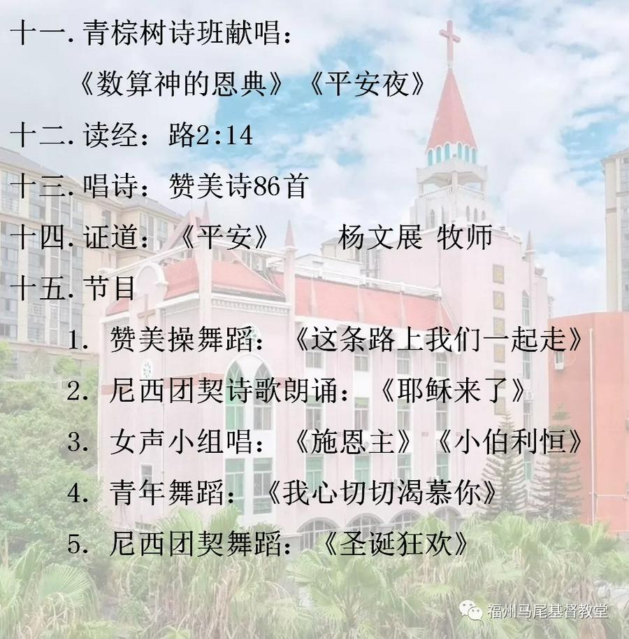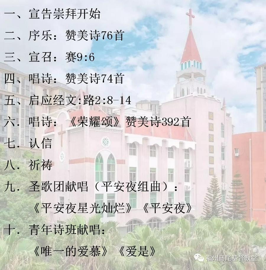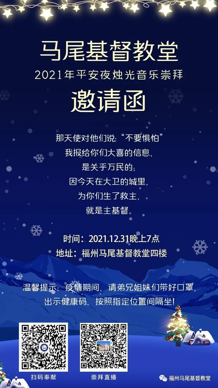 12月30日,福建福州马尾基督教堂通过微信公众号发布通知,公布了12月31日平安夜烛光音乐崇拜的相关安排及具体的程序单。