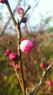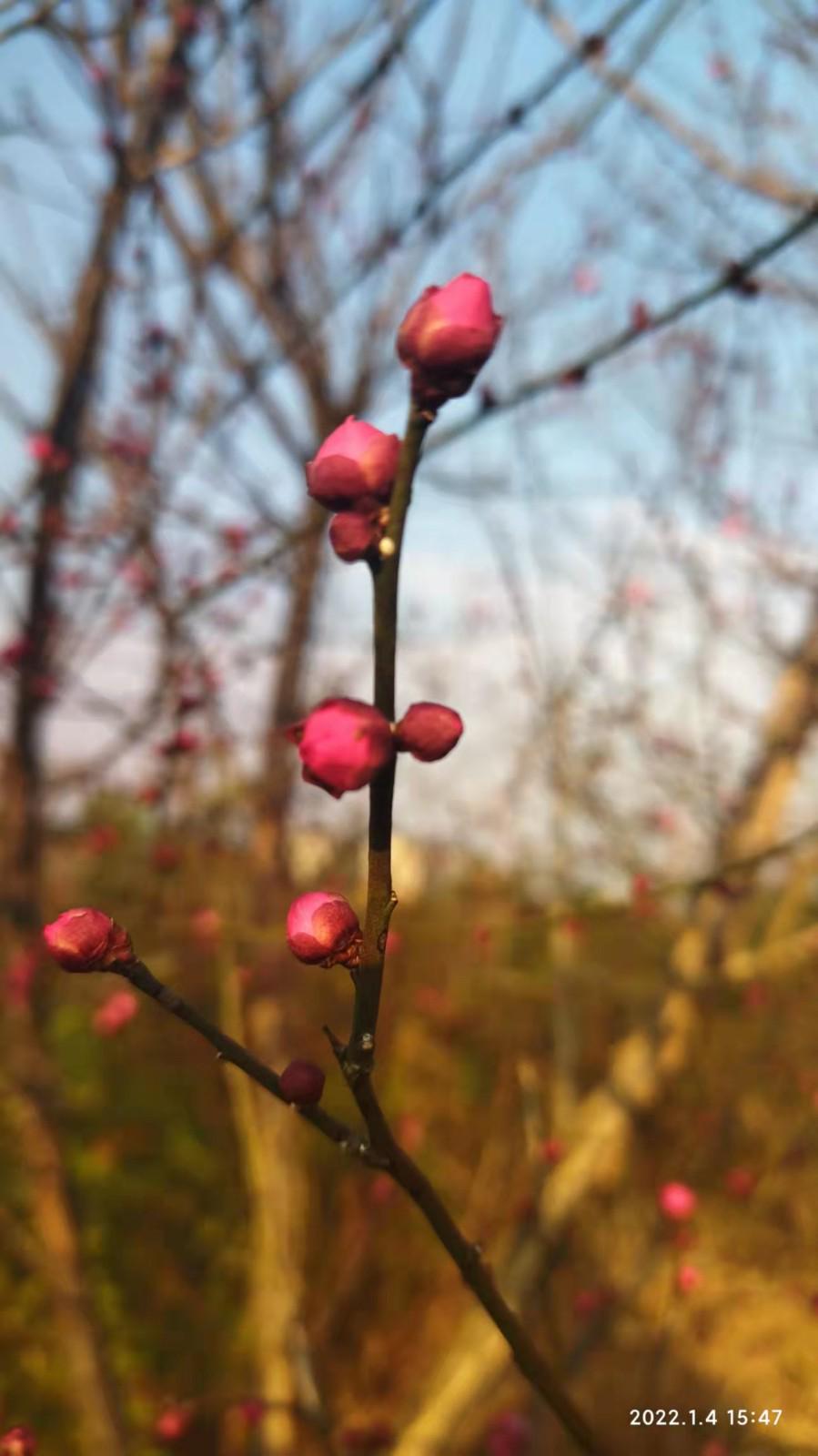 嗨,不虚此行,看到的红梅了。我拿起手机,拍下那朵盛开和正在开放着的粉红色花朵。
