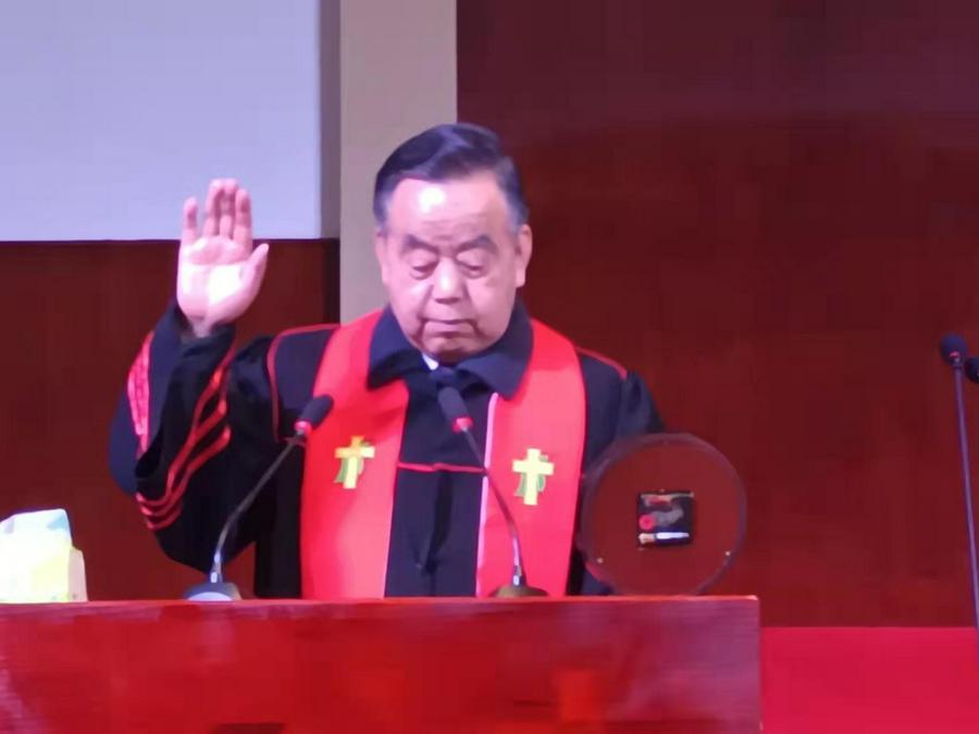 赞美诗献唱完毕,开始了逄先华长老的一堂证道。逄长老依据圣经(罗12:1-2;腓4:8-9)章节经文,围绕主题《做有属灵美好品格的人》,用了近40分钟时间,讲了三部分。