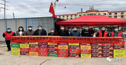 南昌县基督教两会积极响应市基督教两会号召率先在全县各堂点开展捐款捐物,3月25日,县基督教三自爱国运动委员会主委刘英牧师、县基督教协会会长赵启华牧师带领两会同工慰问南昌县抗疫一线人员。同时南昌县真道堂、幸福时光教堂、南昌县东新乡教堂、富山教堂等场所负责人响应市、县基督教两会号召带领弟兄姐妹先后赴社区慰问抗疫一线人员。
