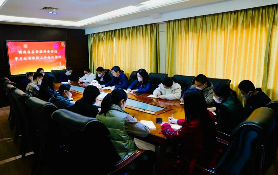 4月18日上午,福建省基督教两会组织驻会工作人员及福建神学院全体师生传达学习全省宗教工作会议精神。省基督教三自爱国运动委员会主席、福建神学院院长岳清华牧师结合福建基督教实际,引导大家认真学习领会全省宗教工作会议精神。