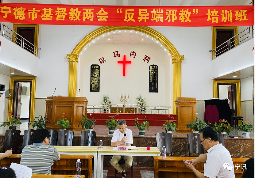 下午,在宁德市基督教两会“反异端邪教”培训班上,市基督教三自爱国运动委员会副主席、反邪教异端专委会主任谢柏涵牧师以“反邪教·传真道”为题,从邪教是什么、邪教的特征、邪教的危害及如何防范同与会人员分享,并以“传好中国教会福音、讲好中国教会故事、管好中国教会讲台”共勉。