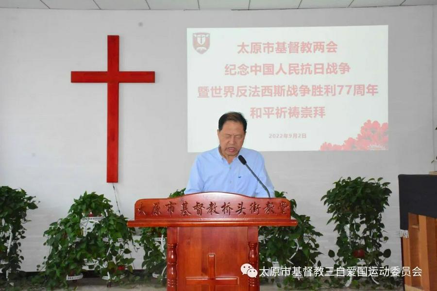 9月2日,山西省太原市基督教两会举行纪念中国人民抗日战争暨世界反法西斯战争胜利77周年和平祈祷会及同工会。市基督教两会班子成员、教牧同工及各堂点骨干义工约百余人参加。会议由市基督教三自爱国运动委员会秘书长罗海良牧师主持,市基督教两会主任、会长张恩来牧师作代祷。