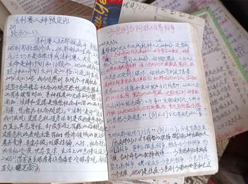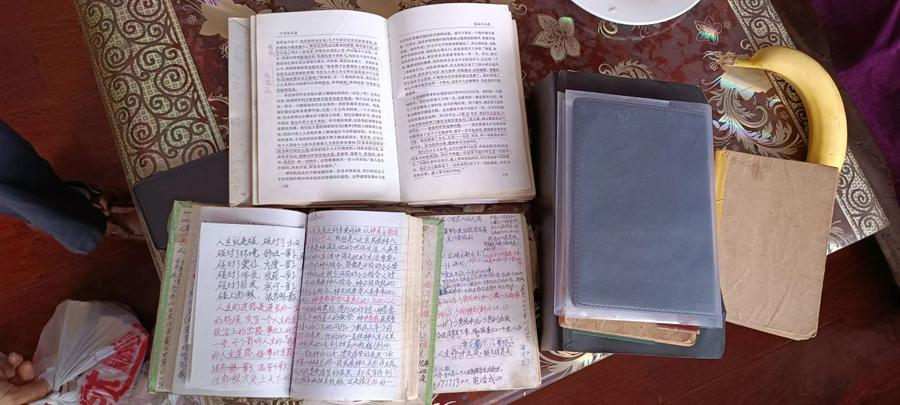 他只上过扫盲班,却把五册字典反复翻阅,不断读经、祷告、抄写经文和灵修笔记,写了十多册读书笔记,抄录有许多研经释道文章,至今每天在手机上阅读灵修文章,有好的还抄写下来,与弟兄姊妹分享。