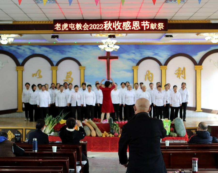 “要赞美上主!要感谢上主,因他至善;他的慈爱永远长存。”在诗班献诗之后、在喜乐的氛围中,老虎屯教会拉开了2022年秋收感恩节献祭活动。