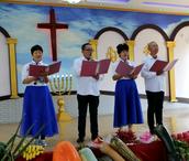 上午八点四十分,诗班的同工们盛装唱诗《丰歌唱不尽》等,张玉胜弟兄主持了今天的秋收感恩赞美会盛典,他带领大家奉主名恭读圣经诗篇65篇,并为今天的聚会向神做交托的祷告。