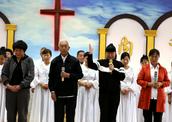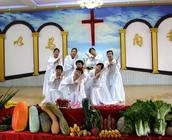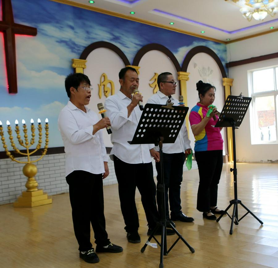教会的教牧同工和各个班组、团契、聚会点的弟兄姊妹,把这一段时间精心预备的舞蹈、合唱、快板等二十个节目献给三一的神,受到热烈欢迎。今年82岁的大屯镇教会的白殿福老弟兄登台,演奏了葫芦丝《同路人》。最后的“压轴戏”是由教会的吴帅牧师、张玉胜弟兄等传道人、执事和同工自编、自导、自演的圣剧《谁体贴主的心》,主要是表现现实教会当中发生的事情。一些服侍的肢体,起初是有热心、中间离开教会做自己的事情,不再服侍,到最后在老传道人的祈祷中,被圣灵感动,认罪悔改,又重新回归的教会的真实故事,朴素而带有地方特色的语言、大家熟悉的场景,台上表演的演员落泪了、台下看圣剧的信徒有的也落泪了。
