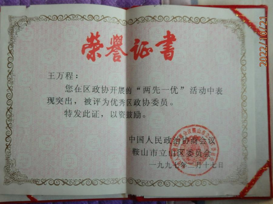 授业解惑、为人师表,这是王万程弟兄的真实写照。他以自己敬畏上帝的心,爱国爱教、爱岗敬业、荣神益人的行为向周围的人彰显了基督信徒的优秀品行,也获得了单位和社会的认可。他是鞍山市立山区的人大代表、连续几届的政协委员、常委,还担任过区政协民族宗教组的组长,在立山区“两先一学”活动中表现突出,被评为优秀政协委员。面对这些荣誉,他和我说:这一切都是靠主得胜,不是靠我个人。我尽量去做好,也是荣耀神。