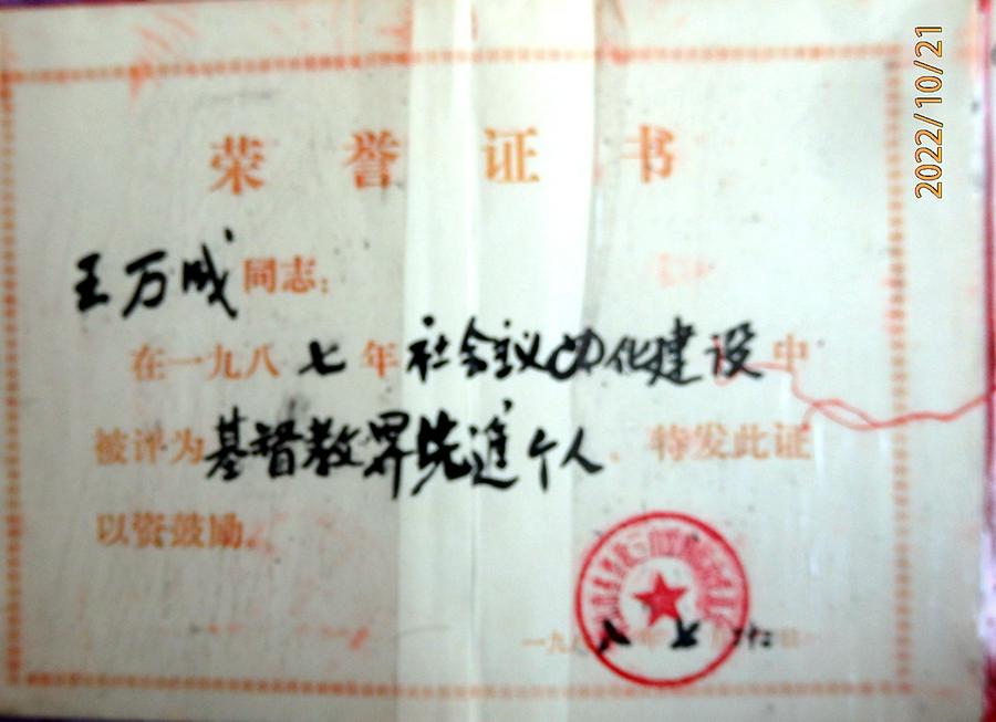 后来,王万程弟兄的老母亲归天家了 ,领导再也没跟他讨论放弃信仰这个事情。感谢上帝!鉴于他突出的、独有特色的教学工作,被破格提拔为一个学校的校长。在当时的政治背景下,一个基督徒、一个相信上帝的人、一个不是“组织里”的人,当上校长是极为少见的,可以说是凤毛麟角。