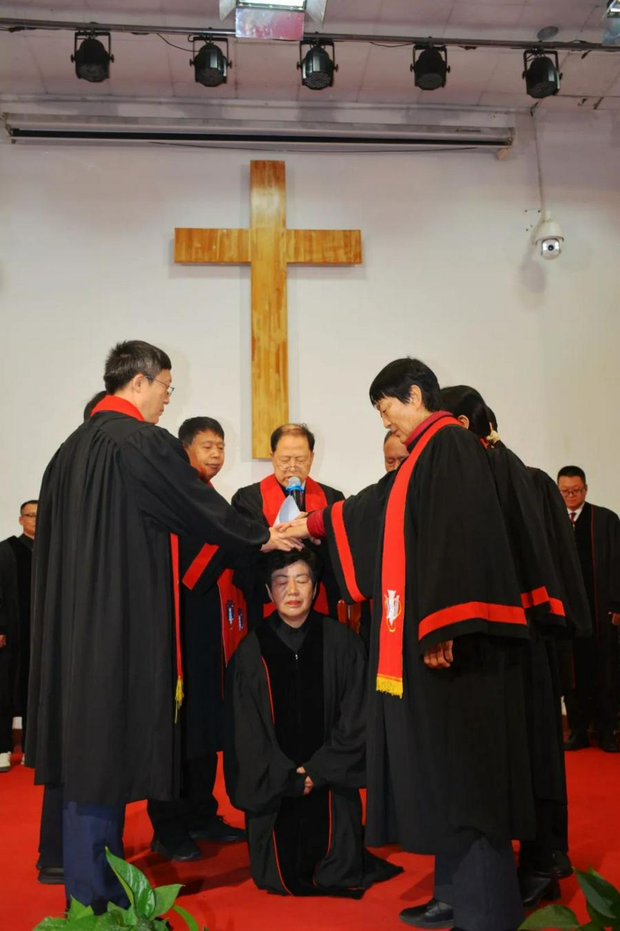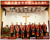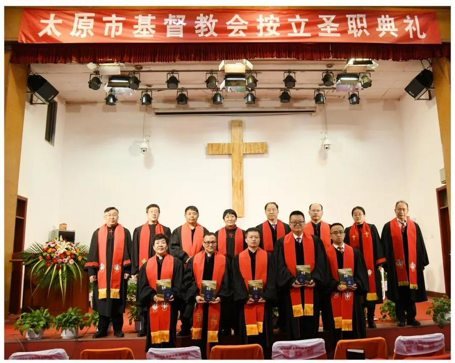 山西省基督教协会会长张恩来牧师、山西省基督教协会总干事霍成西牧师、山西省基督教两会监事会副主任王晨星牧师、太原市基督教协会副会长王青锁牧师、太原市基督教三自爱国运动委员会秘书长罗海良牧师、太原市基督教协会总干事王素霞牧师、太原市基督教两会监事会监事李跃峰牧师及太原市基督教两会杨玉虎牧师组成按立圣职牧师团。