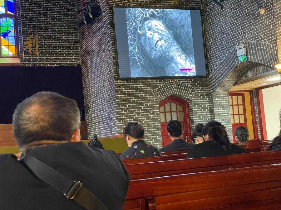 崇拜在李牧师的祝福中结束。结束后教会邀请大家一起观看了《耶稣受难记》耶稣被钉十字架的短片。有人在观看中感动流泪,也有信徒告白神的爱。