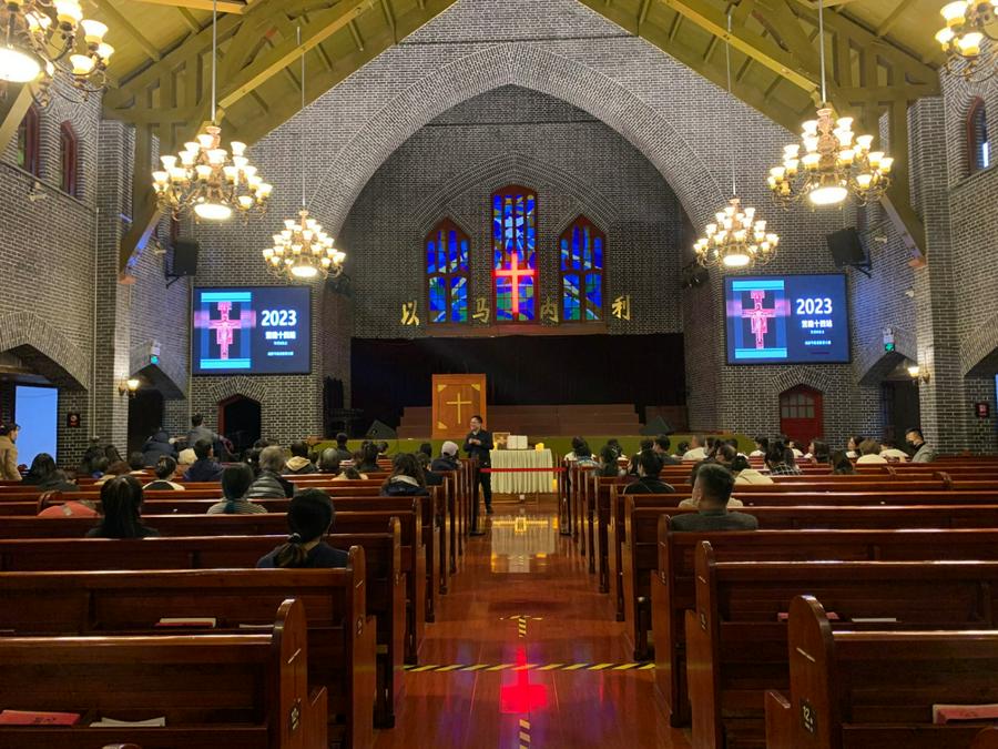 2023年4月7日是受难日,成都基督教恩光堂于当晚举行了“苦路十四站”默想祷告会。