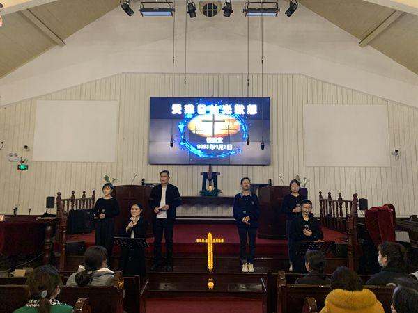 在为中老年人开设的受难礼拜中,常青诗班身着圣服向神献上庄严的敬拜诗歌,高牧师以《默想主十架》为题,劝勉中老年信徒效法耶稣基督,仰望十架救恩,活出“光盐”生命;在针对中青年信徒举办的“受难烛光默想暨十架七言主题祷告会”中,弟兄姐妹在盈盈烛光中低声吟唱《最痛的时候》、默想聆听“十架七言”、做自省回应的祈祷。参加当天活动的总人次约有120人。