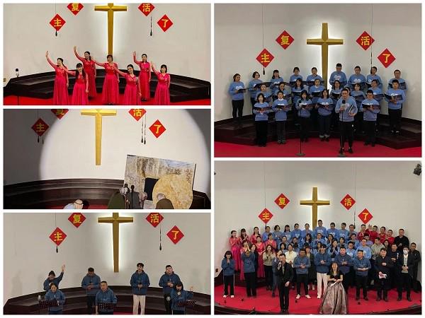 在神圣的殿乐声中,赞美团和诗班成员手持马蹄莲入场,欢呼颂扬,庆祝耶稣从死里复活。崇拜中还播放了本堂信徒的视频见证,见证复活的基督在个人生命中的奇妙带领,见证神的荣耀和个人的改变。让会众深切感受耶稣复活带来的能力和更新。