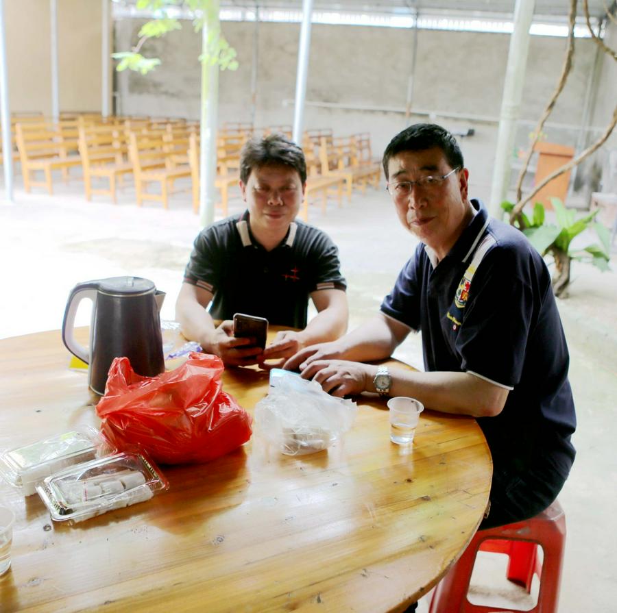 福成村教会,这是距离北海市约30公里市郊的一个乡镇的聚会点。在绿树成荫和鸟语花香的优雅环境中,我看到十字架下神的圣殿,得知这是当年德国信义会传道人在1910年所创立的,具有110多年的历史。这里是1986年恢复聚会,2000年建设新堂的。在这里听到了主堂中传来赞美的音乐声,原来是教会的李秀金姊妹和同工们在主堂以舞蹈的形式赞美三一的神。由于早晨匆忙,没有来得及吃饭,所以和教会的87岁的李老弟兄一起吃了当地的土菜,感谢上帝赐给的日用饮食!