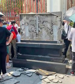 4月30日,有网友发帖称,广州石室圣心大教堂文物保护标志碑破碎。原来是一位小孩在拍照时,爬上了文保标志碑,在他跳下来时,这块碑发生了碑面脱落破碎,导致了孩子和妈妈受了轻伤。