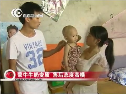 据《看看新闻网》报道,上海市民田先生向媒体反映,他家1岁多的小孩喝了蒙牛高钙牛奶后拉肚子,田先生特别亲自品尝后才发现给女儿喝的牛奶已经变质。记者为此致电蒙牛地区业务负责人,对方竟嚣张叫嚷说:我倒要看看!你给我曝光,曝光呀!面对电台媒体工作者,蒙牛对自己生产的变质奶流通市场毫无悔意。
