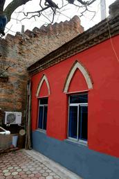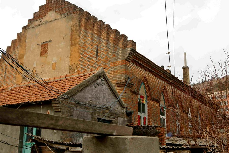 为了寻访、瞻仰当年聂乐信教士所建的基督教堂,我们在孙雪惠姊妹、李弟兄的引领下来到孤山镇街里,景山街58号一带去一睹风采。远远的,我们就望见了那具有教堂和丹麦风格的建筑矗立在高处。这里现在住着八户居民,建筑外面依稀可见当年教堂的钟楼所在的痕迹,后被拆毁不见。这里的建筑框架基本保存原貌,但是肉眼可以看到有的外墙已经破损,当年的那些砖也有些风化了。我们围绕着当年的教堂前后观看,边看边听孙雪惠姊妹和李弟兄介绍这所教堂百余年来的风雨历程和遭遇,大家不禁为当年聂乐信教士在这里的艰辛付出所感慨和感动。同时真的为这所教堂虽然还在,但是没有被神所继续使用、不再是圣殿而感到惋惜,求神怜悯吧!我们在老教堂合影留念,惜别。