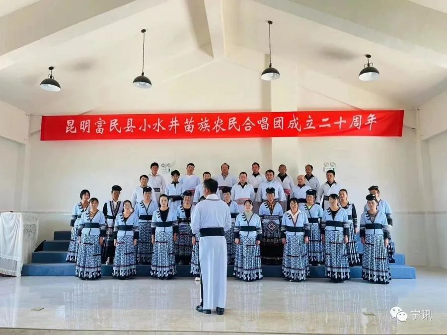 在云南省昆明市富民县小水井村,研学组认真欣赏了苗族农民合唱团献唱迎宾曲、苗歌、舞蹈等节目,大家深切感受到了苗族兄弟姐妹内心的“真、善、美”。赞叹之余,研学组也献唱了《爱的诗歌》《恩友歌》表示答谢。离别之际,合唱团还为大家献上送别歌《再见吧朋友》,研学团成员纷纷被苗族农民合唱团的故事和他们的热情好客举动深深感动,现场为小水井教会重建教堂募集27300元捐献款。