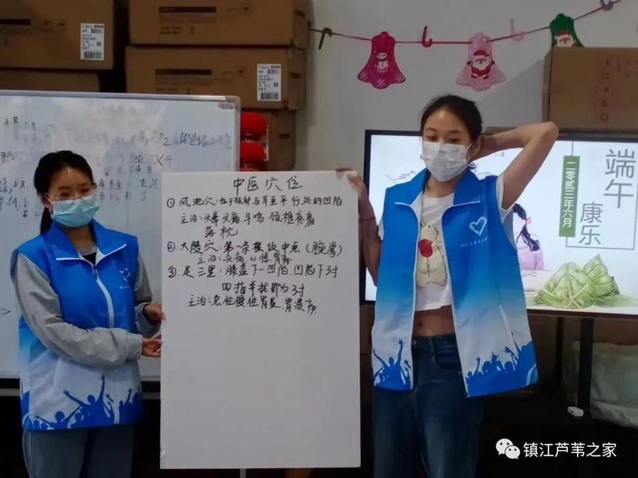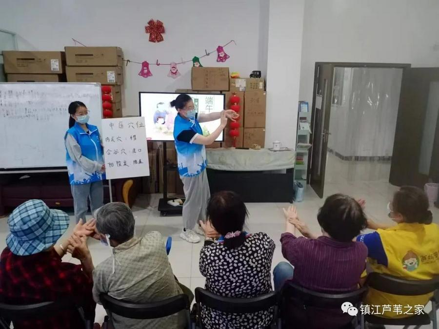 6月2日,为了迎接庆祝端午节,同时关爱社区老人的身心健康,江苏镇江芦苇之家义工服务社联合镇江高专护理学院南丁格尔志愿者在芦苇之家活动中心举办了一场丰富多彩的活动:中医助力社区老人平安喜乐度夏。