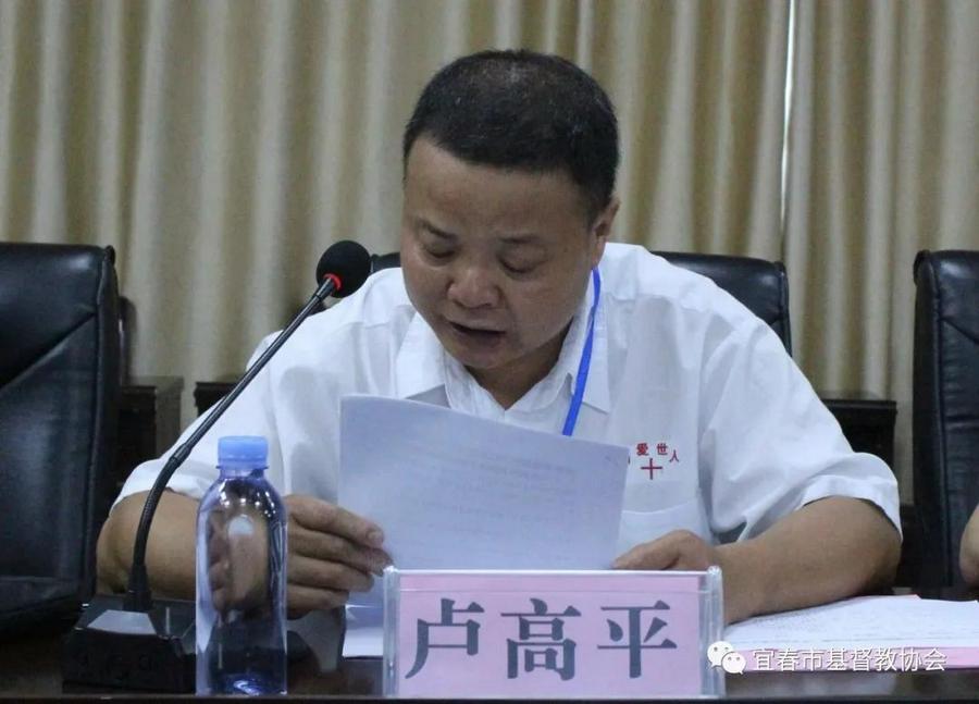 新当选的宜丰县基督教三自爱国运动委员会主席卢高平副牧师致辞,他向宜春市基督教“两会”、宜丰县委统战部、县民族宗教事务局、县民政局的各位领导,对宜丰县基督教三自爱国运动委员会的成立给予大力支持和帮助表示衷心的感谢,表示将不负重托,和领导班子成员团结一心,共同带领全县基督教信众拥护中国共产党的领导,坚持基督教中国化方向,践行社会主义核心价值观,自觉与社会主义社会相适应。遵守法律、法规和《宗教事务条例》开展宗教活动。坚持“自治、自养、自传”的三自原则,维护教会合法权益。加强领导班子建设、制度建设和教职人员队伍建设,促进宜丰县基督教健康发展。积极主动开展社会慈善公益活动,为和谐宜丰、幸福宜丰做出更大贡献。