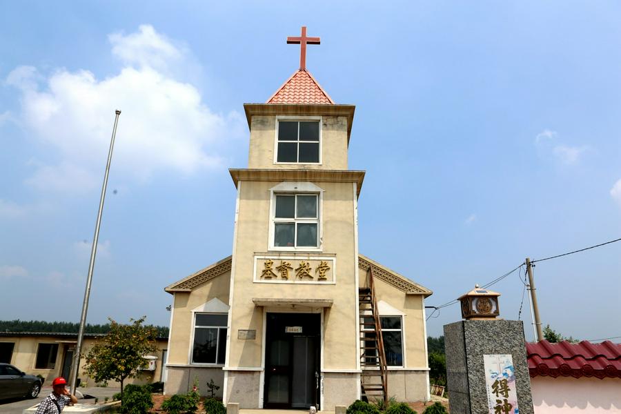 之后,冯教士亲力亲为带领同工们不辞辛苦的在2019年建设了办公室、食堂、卫生间等附属建筑。2022年圣殿里墙皮脱落再次维修。2023年4月22日砌主体大墙上琉璃瓦,墙体喷绘写字 “爱国爱教 荣神益人”“不忘初心,牢记使命。”荣耀归神!