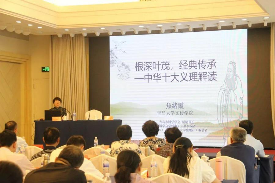 青岛大学文传学院焦绪霞老师以《根深叶茂经典传承——中华十大义理解读》为题,讲述“仁、义、礼、智、信、忠、孝、廉、毅、和”的中华民族传统美德。