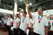 音乐赞美聚会的最后部分是由本堂牧师献上祝福祷告,并在集体合唱《一粒麦子》这首结束赞美诗的过程中由本堂长老和传道为大家佩戴活动参与纪念牌,最后大家一起登台合影留念。