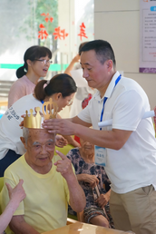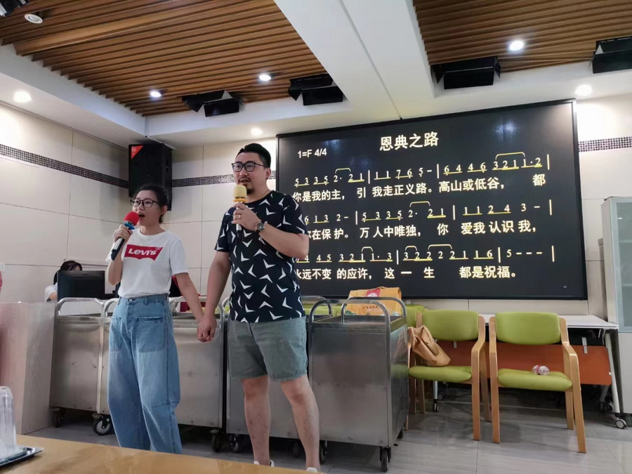 生日会在八点半准时开始,事工班的肢体们为老人们的生日助兴,精心准备了老人们喜欢的歌,带动老人一起歌唱,最后大家一起吃蛋糕、并在主里籍祷告祝福老人们平平安安地安然渡过炎热的夏日。7月份出生的老人有12位,加上5位百岁老人,并一位护理人员,大家一起在高温的三伏天欢歌“云上太阳、赞美之泉”等歌;学员中的一位弟兄恰好是结婚周年纪念日,被邀请与妻子一起唱“恩典之路”;此次实践活动还安排了其它活动环节。