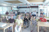敬老院有一个为当月生日的老人们每月一次集体过生日的传统,同时会邀请院里的百岁老人一起参加。当月生日的老人戴红冠,百岁老人戴金冠,学员们抓住这个契机组织一次集体实践活动,用唱歌为老人们服务,因为大部分学员都在教会的诗班中服侍。当老人们陆续到场时,学员们为老人戴上生日冠冕,并与老人们聊天,了解他们在敬老院的生活。