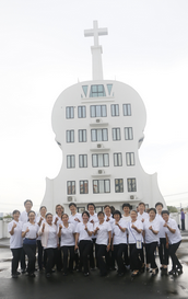下午2点,在彭平牧师的陪同下,与天河堂弟兄姊妹们一同参观游览奇妙建筑--小提琴教堂。盐步堂外观似一座小提琴雕塑,在宁静的花地河畔,伫立等候着你来弹奏一曲天上的歌,来赞美感恩上帝的恩典。正如诗篇150:1所记载:“你们要赞美耶和华!在神的圣所赞美祂!在他显能力的穹苍赞美祂!
