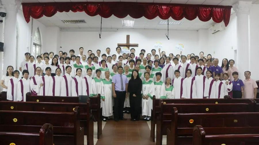 意在通过堂与堂之间圣乐的交流,使诗班在圣乐上有更多的长进,竭力追求灵命上的成长,也从神那里支取更多的信心和力量,使弟兄姊妹们能更加火热服侍主。在尽好诗班员本份的同时,也能够有更多的机会可以走出去,将福音广传。为此,天河堂尼西诗班、活泉诗班、妇女诗班一行71人于2023年7月30日,在何明霞牧师的带领下,来到佛山基督教金沙堂和盐步小提琴教堂交流学习。