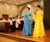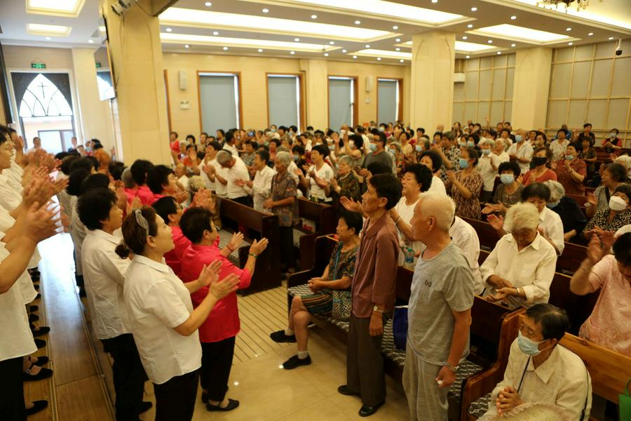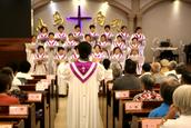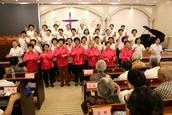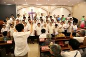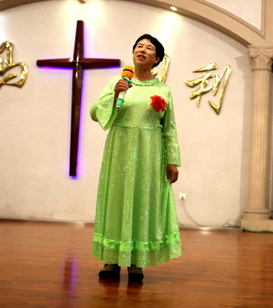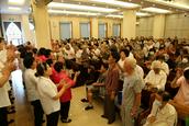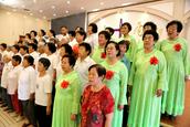 赞美会最后是所有的团契组长的大合唱,此时“荣耀归神,荣耀归至高真神!荣耀归至高真神!荣耀,荣耀,荣耀,荣耀……”嘹亮的歌声响在圣殿,全体参会的信徒起立,击掌,有节奏的呼应合唱,使今天的赞美会达到了高潮。