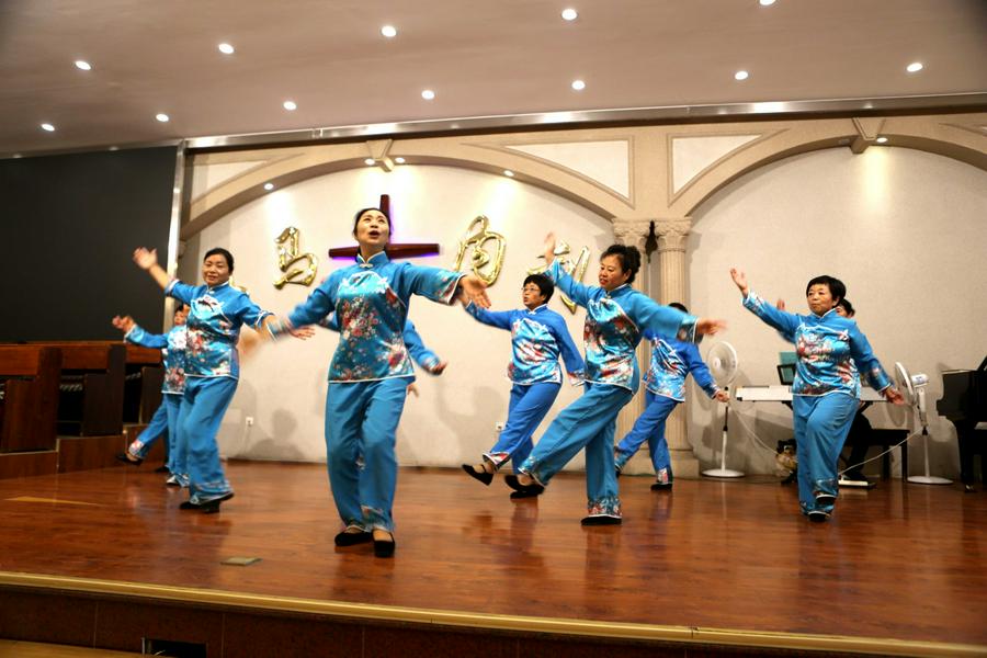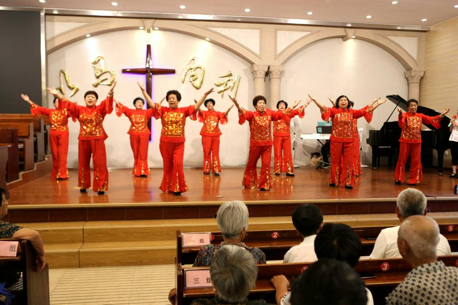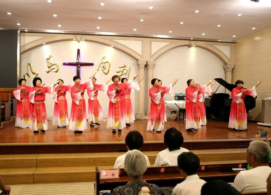 舞台上,老年弟兄姊妹精神矍铄、意气风发,有的老姊妹都82岁了,也在台上歌舞,身体灵活的如鹰返老还童、灵里朝气蓬勃。赞美会充满感恩之情、充满圣灵的浇灌。