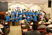 2023年8月3日上午的清晨,教会约书亚团契的弟兄姊妹们就从四面八方来到教会的伯特利教堂,弟兄姊妹见面格外亲,跟随领诗的姊妹赞美,喜迎团契成立五周年的欢乐感恩赞美聚会。
