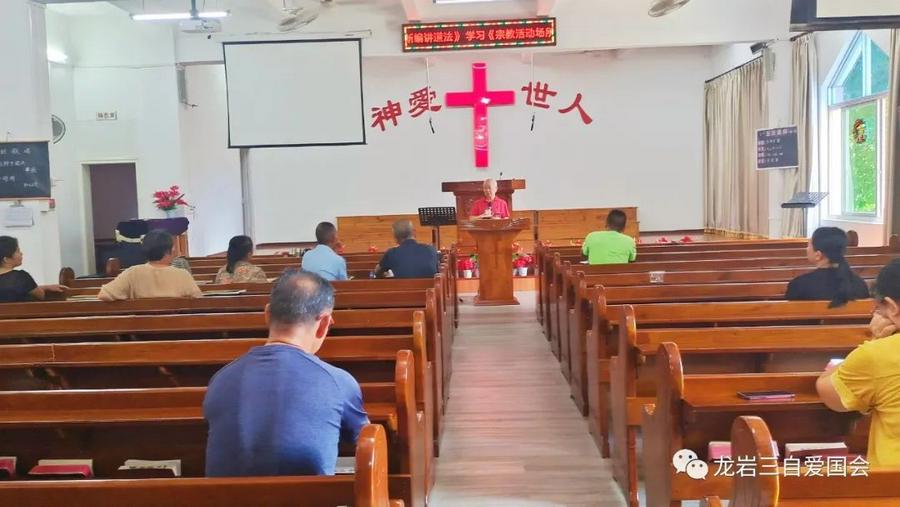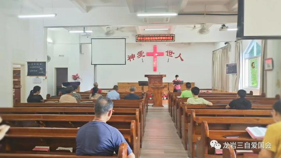 8月5日,福建省龙岩市上杭县基督教三自爱国运动委员会在县南门教堂举行宗教政策法规学习月活动暨《宗教活动场所管理办法》学习。县基督教三自爱国会班子成员、乡镇堂点负责同工参加了此次学习活动,并由县基督教三自爱国会主席陈发中同工带领大家一起学习。