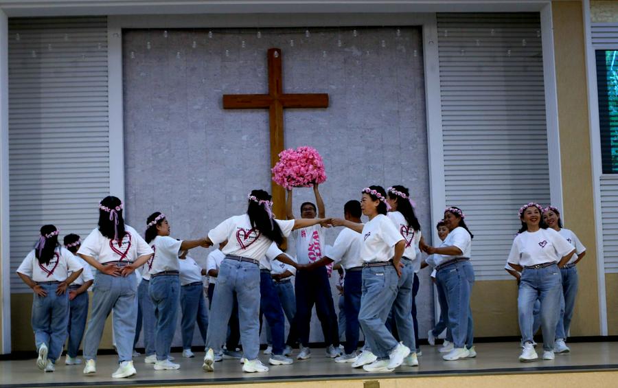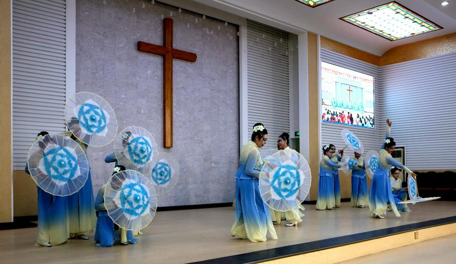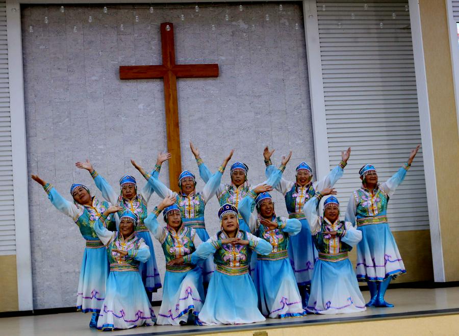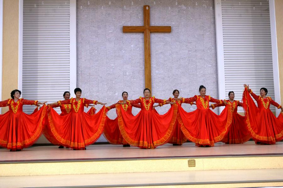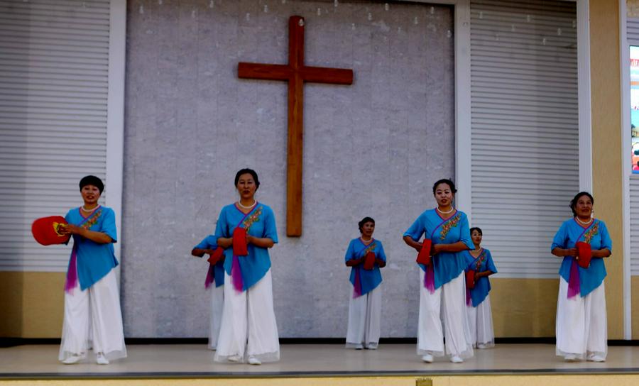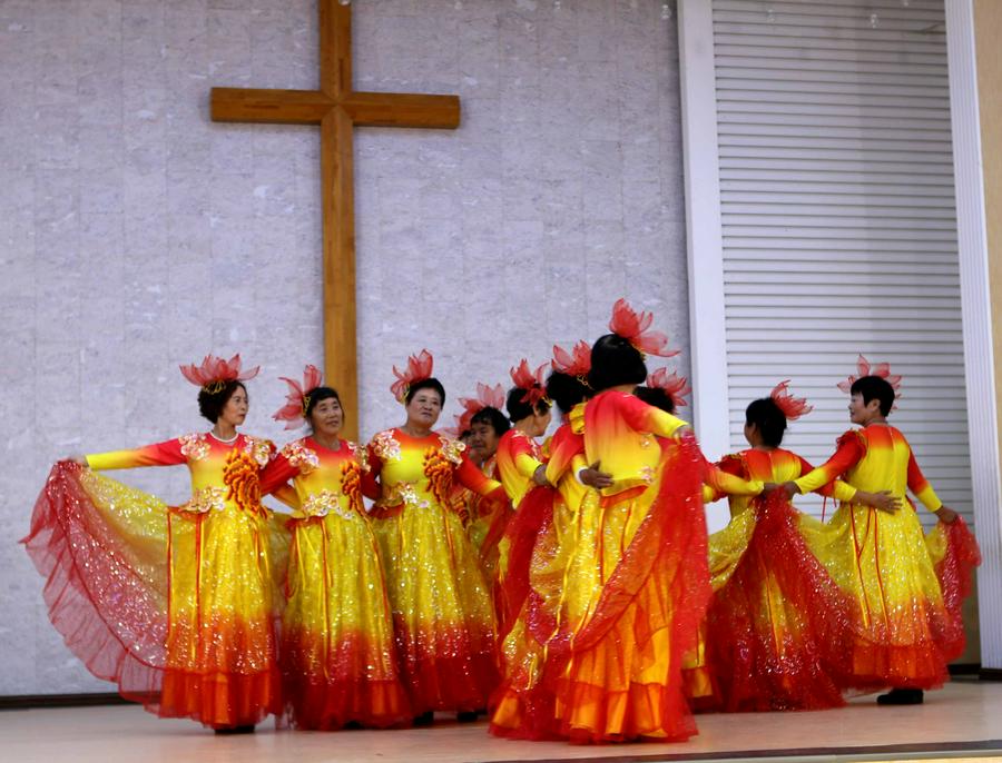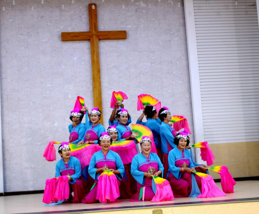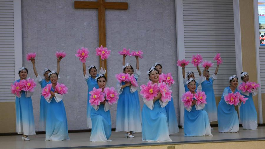 来自于城市教会的、乡镇教会的众位弟兄姊妹期盼了两年的舞蹈联谊会开始了,其特点就是各个教会在圣殿、圣台完全是用舞蹈的形式来赞美我们三一的真神的上帝,歌颂伟大的祖国,祝福教会复兴、祖国繁荣昌盛。