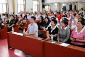 今天清晨,五点多钟大石桥新生命堂的同工就来到教会开始了工作。六点十分,高坎教会参加舞蹈联谊会的教牧同工首先来到教堂,接着营口市太和教会、汤池教会等弟兄姊妹也陆续来到主会场,不到八点,能容纳千余人的主堂楼上楼下座无虚席,来自于营口市的盖州市、大石桥市和鲅鱼圈区、站前区、西市区、老边区各个教会的弟兄姊妹们兴高采烈的来到这里,迎接这美好的赞美献祭时刻。