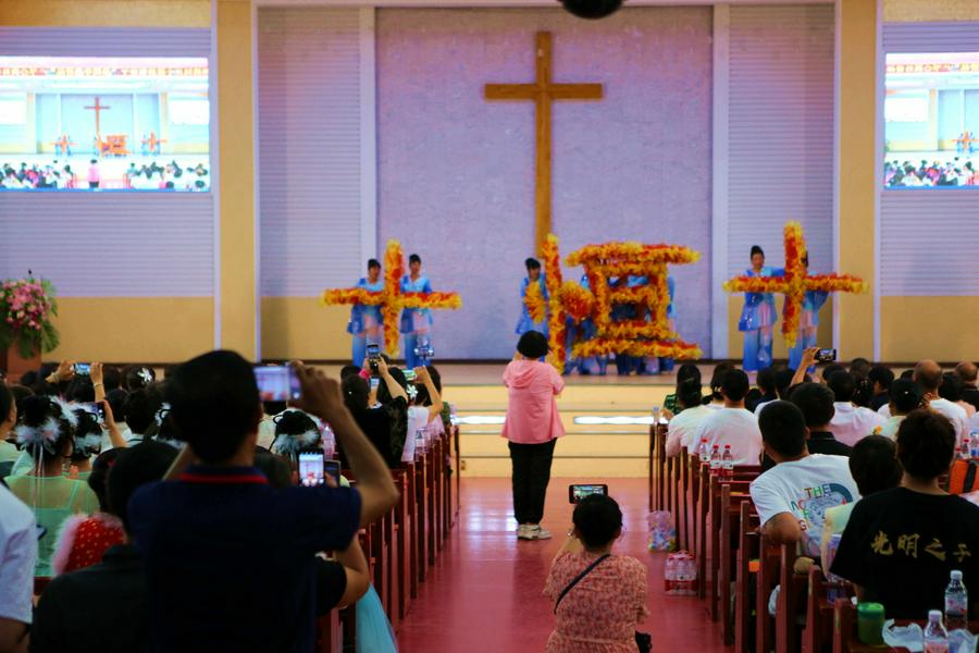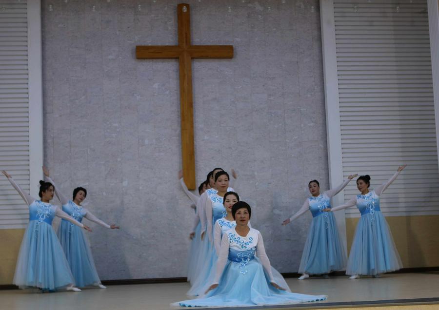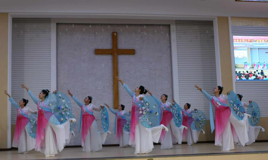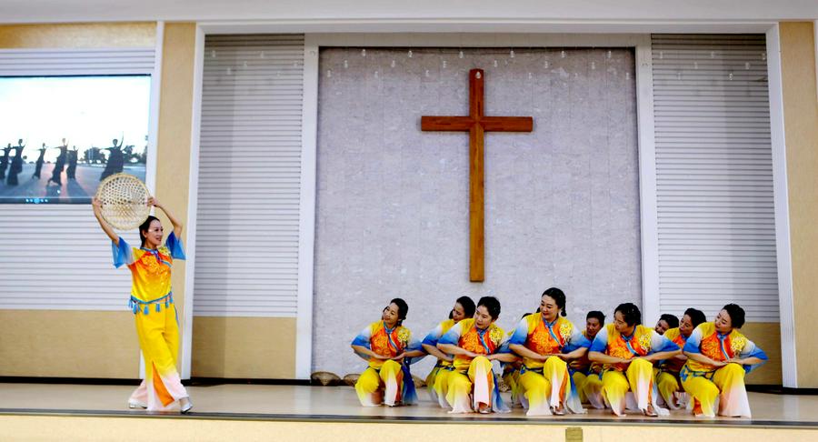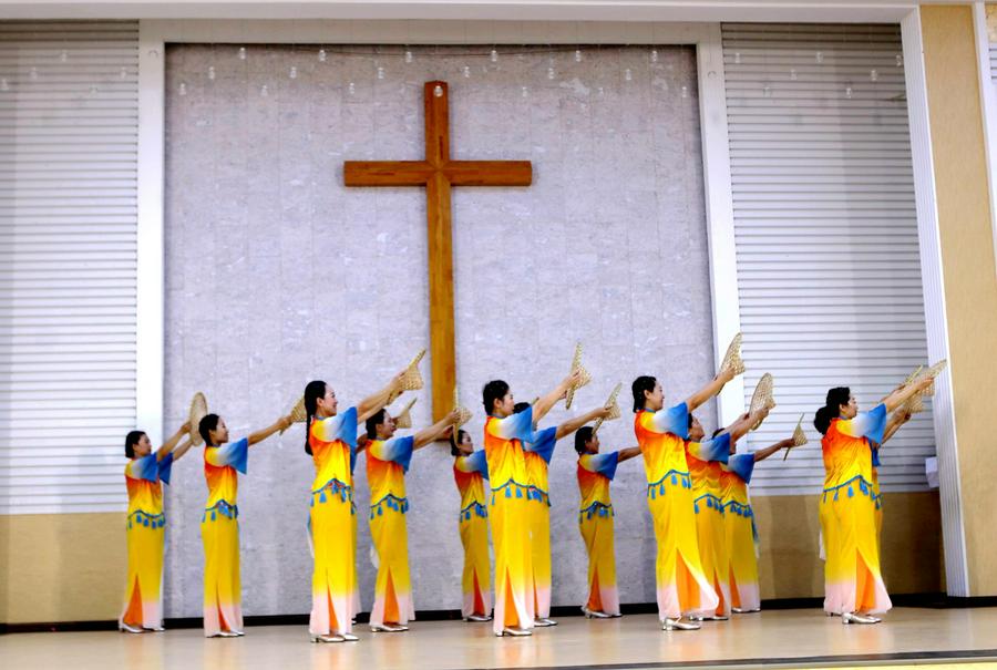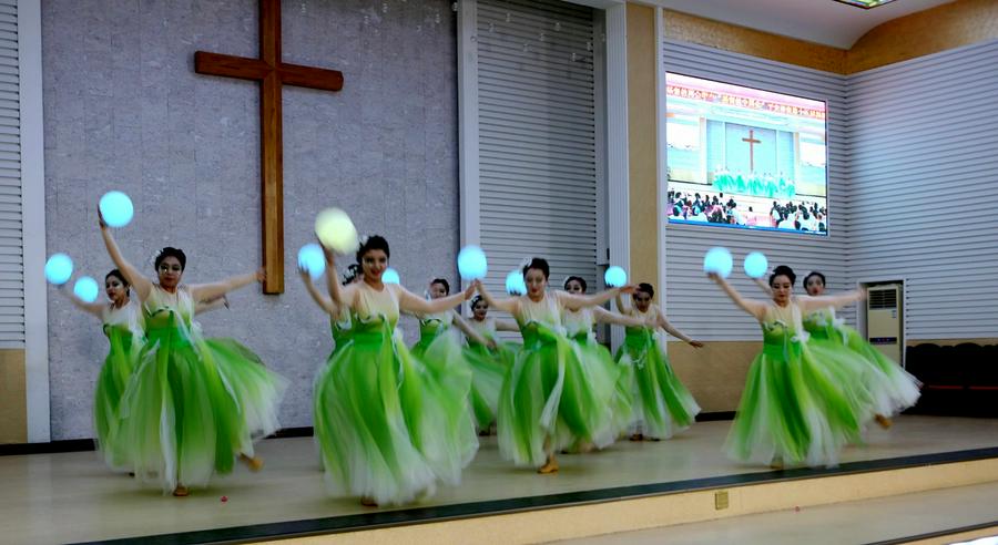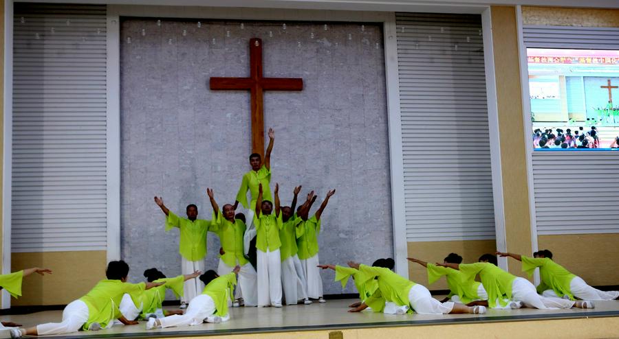 参演的三十一个堂点将预备了好长时间、多次排练的舞蹈献给圣三的真神上帝。