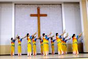 曼妙舞蹈彩色衣,同心联谊基督里。