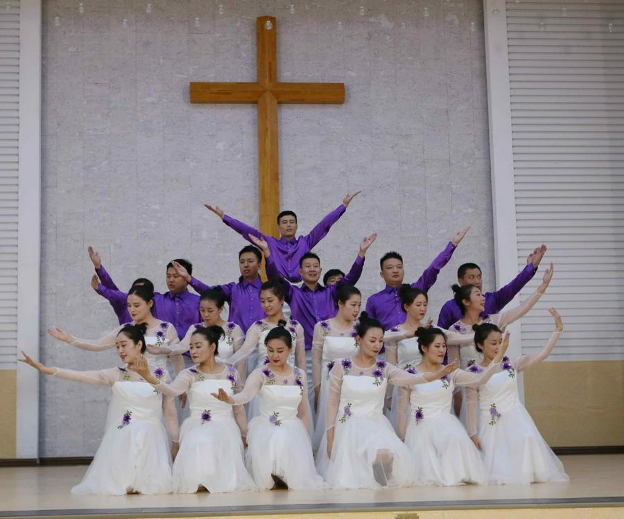 当几位主持人再度登场,宣布营口市基督教两会的基督教中国化第十五届平安诗班(青年组)舞蹈联谊结束时,全场响起了热烈的掌声,感谢三一神的恩典。