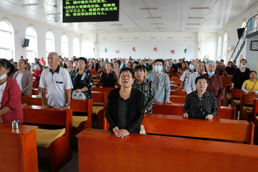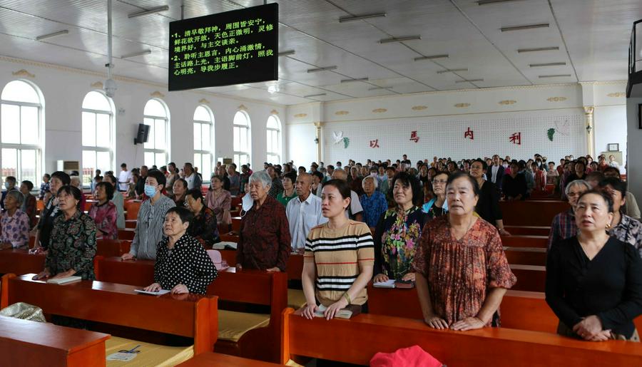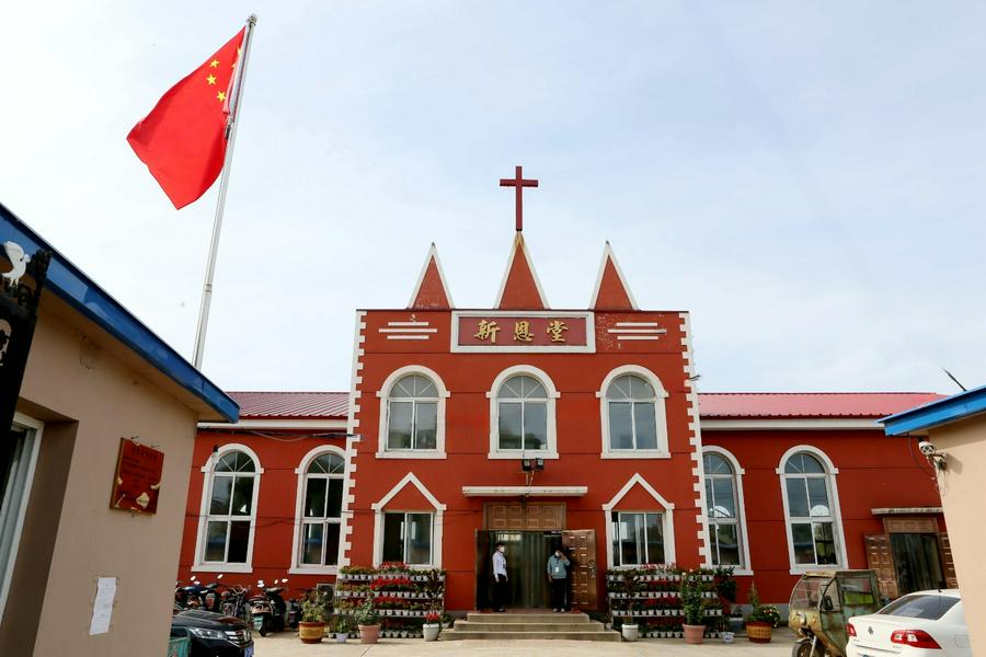 现在的新恩堂,有主堂、副堂;教堂小广场左侧五星红旗高高飘扬;白色的围墙镶嵌着中国传统的汉瓦;教堂内部整洁明亮、冬暖夏凉;音响、乐器等设备齐全;教牧同工无怨无悔为主事奉、信徒们甘心乐意为主奉献;教堂以基督为元首,上下合一、和睦同居走在教会复兴之路,向着标竿奋勇奔跑。