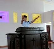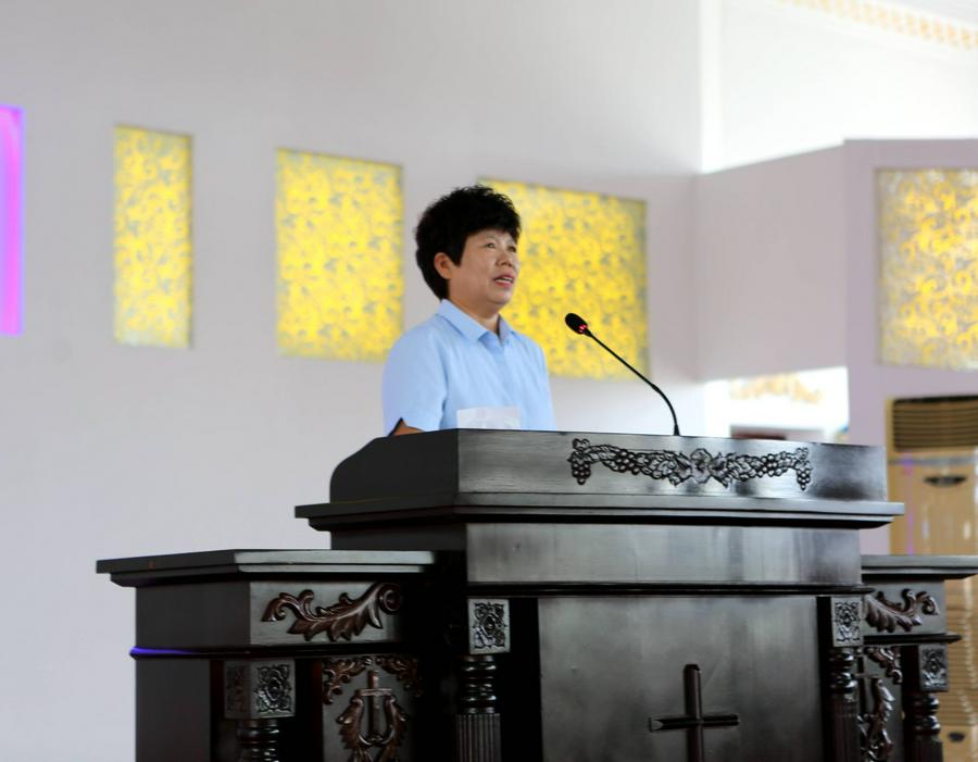 她带领会众恭读圣经创世记6章9节和路加福音17章26至27节的经文,以“与世人分别的挪亚”为题,传讲了信仰与世人分别;行为与世人分别;结局与世人分别等三个方面。