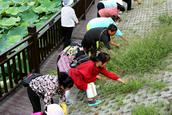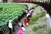 今天主日聚会后,会众们响应呼召,自觉的来到荷塘拔出杂草,清理环境,其中有青年同工,也有不少白发苍苍的老姊妹。大家边劳动,边欣赏这荷塘、教堂美景,有说有笑。张长老告诉我:他们和村里承诺“承包”了属于公用荷塘的除杂草等环卫、公益工作,受到当地村民和政府的好评。