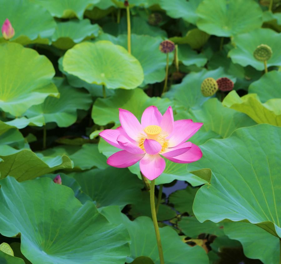 亲爱的弟兄姊妹,在城市,你会看到那高楼大厦、车水马龙,而当你来到新恩堂殿后面的荷塘举目望去:“接天莲叶无穷碧,映日荷花别样红”,蓝天白云之下,碧绿的湖水、荷叶、粉红色的荷花、亭榭、曲桥、鸟鸣,对面是红墙红瓦、白墙围、十字架高擎的新恩圣教堂,这一切,浑然一色,真的景色宜人、令人心旷神怡,难得一见,充分彰显了上帝创造的奇妙美景和安排。当我拿起相机拍下这美景时,随着清新的秋风徐徐拂面而过,内心里充满了感恩、充满了喜乐,这是祂创造的、祂赐予的,这一定是“上帝看着是好的。”