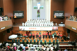 8月20日主日崇拜分早上、上午和晚上三场举行。晚场主日崇拜既有传统的诗班献唱,也有由湖南腾辉堂敬拜赞美队和江西渝水堂敬拜赞美队的同台献唱,真正把众圣徒带到了神的面前,歌声中充满了对上帝的敬畏、称颂、感谢和深深的爱,两省同心合意敬拜赞美的歌声,把主日崇拜的敬拜赞美的气氛推向高潮。